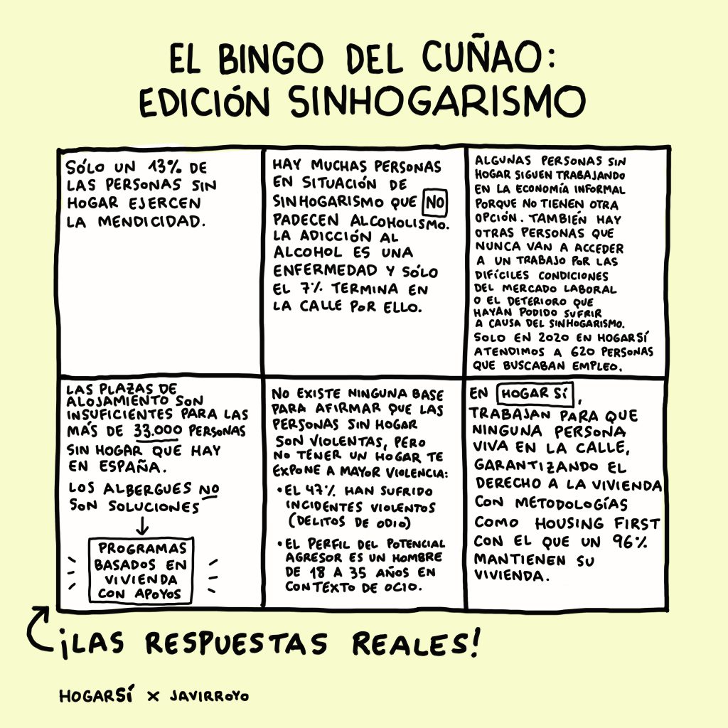 HOGAR SÍ / Blog  / Os presentamos el “bingo del cuñado” hablando del sinhogarismo
