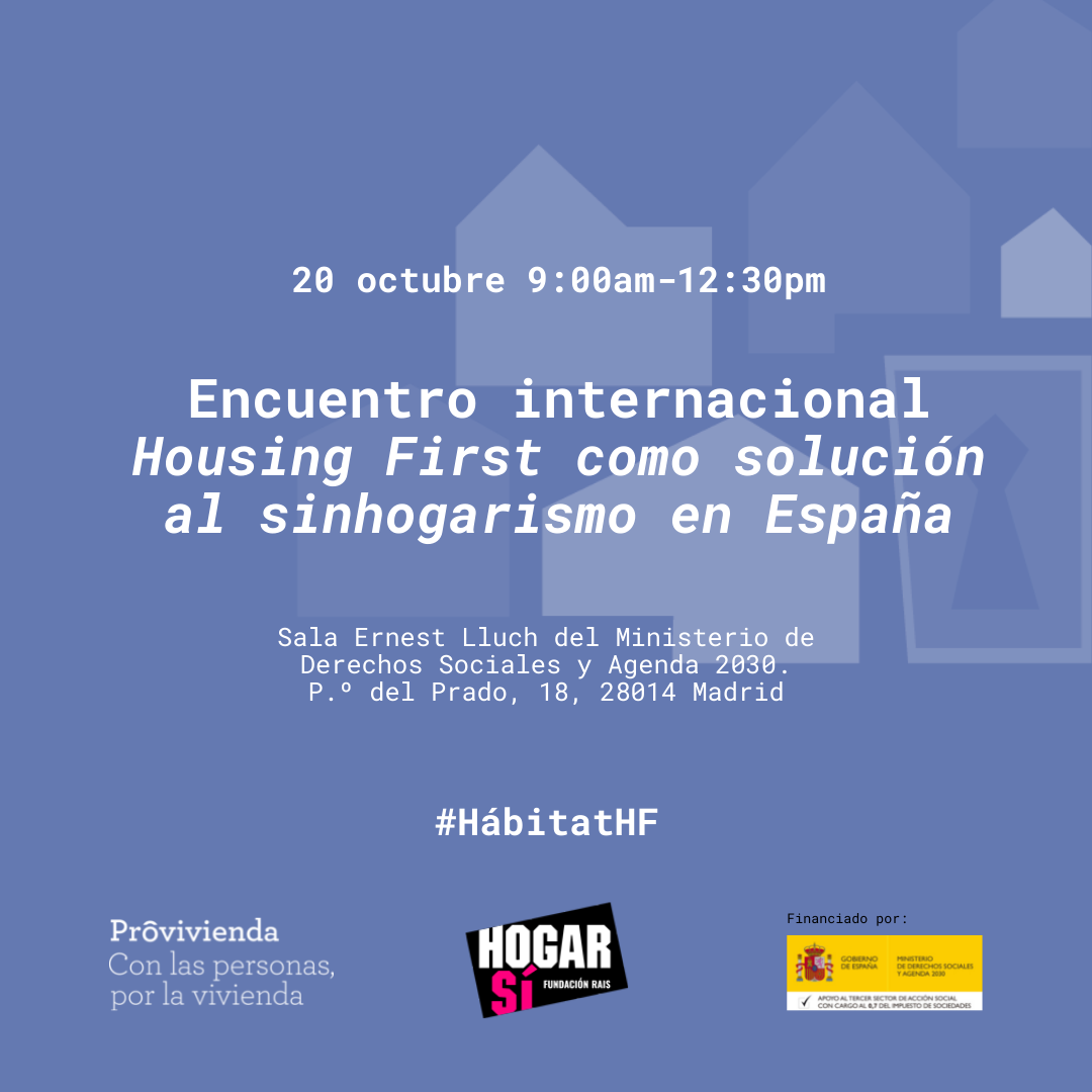 El próximo 20 de octubre HOGAR SÍ y Provivienda junto al Ministerio de Derechos Sociales y Agenda 2030, celebran el Encuentro Internacional “Housing First como solución al sinhogarismo en España”.   El encuentro contará con varias mesas redondas en las que intervendrán ponentes internacionales como Juha Kaakinen, CEO Y-Foundation, Freek Spinnewijn, director de FEANTSA y Geert De Bolle, coordinador en Housing First Belgium Lab. En el encuentro también intervendrán Nacho...